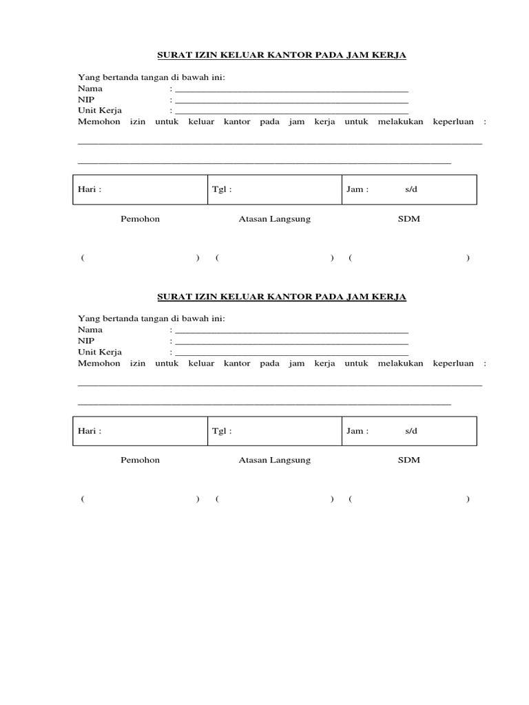 Contoh Surat Izin Keluar